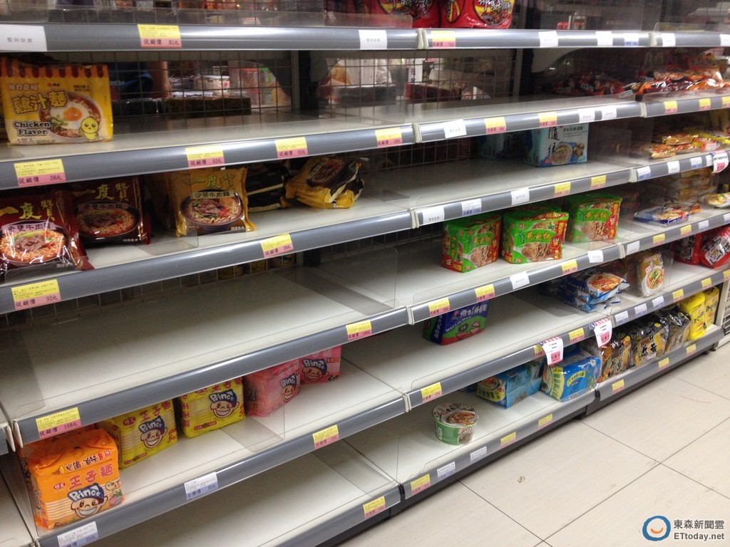 ▼颱風必吃泡麵架上幾乎快搬空。(圖/民眾提供)