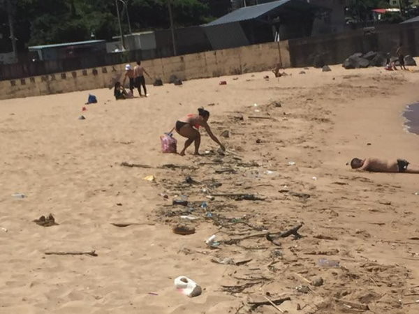 炎炎夏日到來,不少人喜歡到海邊玩耍,但有些人卻是十分沒有公德心,製造垃圾丟棄在現場,不但造成環境髒亂、清潔人員的不便,也會直接影響生態。有些熱心的人們,會自動自發的到現場撿垃圾,最近有網友在基隆外木山沙灘,拍到一名比基尼辣妹撿垃圾。不少人讚賞她的義舉外,旁邊卻有一個亮點引人注目。