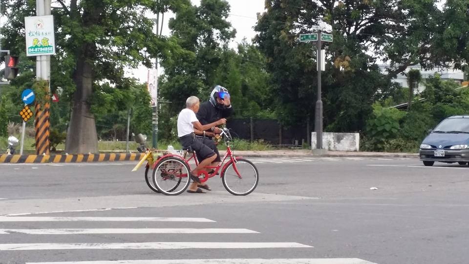 網友在「爆料公社」貼文指出,他7月8日上午10點15分在彰化永靖鄉中山路看見一名逆向騎單車上省道的老翁,但是並沒有發生危險,因為有一名機車騎士把車停在路邊,就下車護送老翁,紅燈兩側的的所有車輛也都停下等待兩人,「颱風天,最美的風景,無風雨的彰化,感謝這夥伴。」