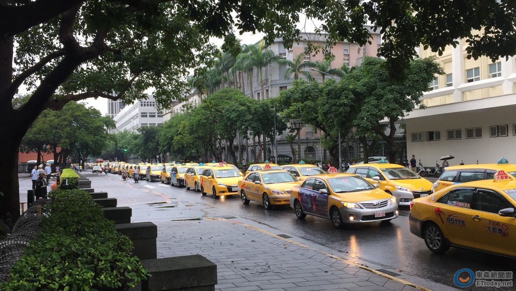 記者陶本和/台北報導計程車與Uber槓上!計程車司機11日集結上百輛小黃,不只是包圍立法院,也繞一大圈路過總統府後門博愛路,且一路按壓喇叭表達不滿。▼計程車槓上Uber,上百小黃路過總統府抗議。(圖/記者陶本和攝)