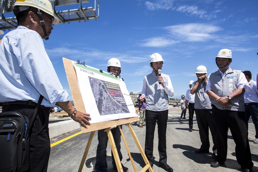 ▲林智堅市長今(12)日前往視察,台68線快速公路高架橋段與榮濱路支線段。