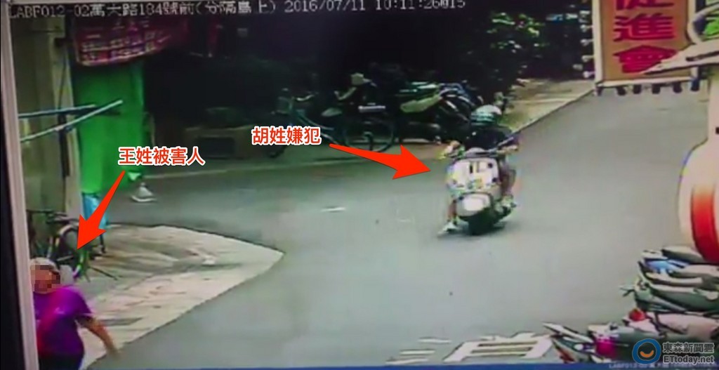 ▲胡嫌騎機車尾隨被害人,趁沒人注意時搶奪金項鍊。(圖/記者柳名耕翻攝)