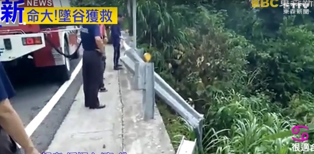 該輛小貨車因不明原因衝落山谷後,一旁目擊的駕駛立刻報警處理,消防人員獲報後出動吊掛車前往救援。駕駛墜谷後受困車內,所幸沒有生命危險,救難人員將男子救出後,因頭部有嚴重撕裂傷,將其緊急送醫治療。至於男子為何會衝破護欄墜谷,仍有待警方進一步釐清。