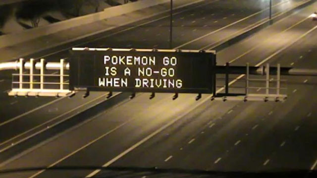 精靈寶可夢(神奇寶貝)手機遊戲Pokemon Go一在美國上架便引發熱潮,許多玩家也為抓寶可夢上山下海,造成不少危險的意外事件產生。美國亞利桑那州交通局為避免有駕駛在行車中分心,也特別在高速公路的警示牌打字「開車的時候,Pokemon不能Go。」