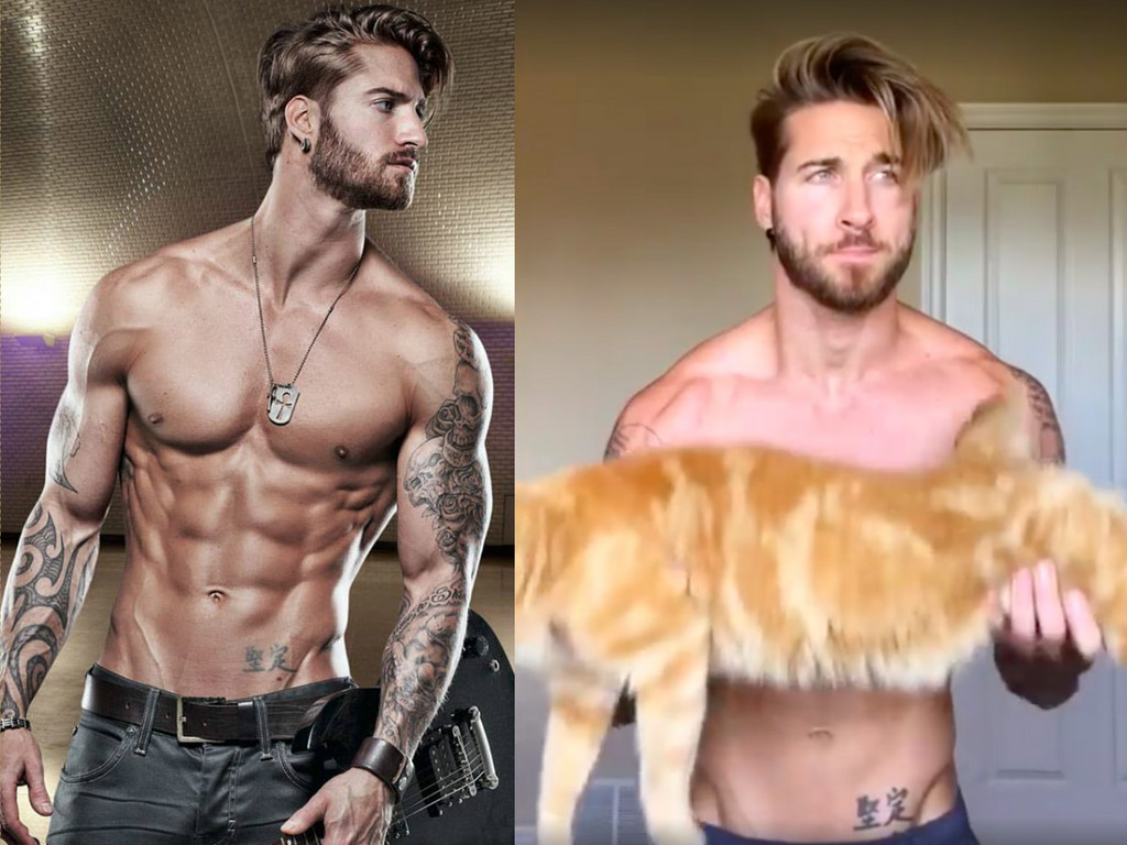 ▲加拿大男模Travis DesLaurier身材超猛,舉貓健身的影片在網路上爆紅!