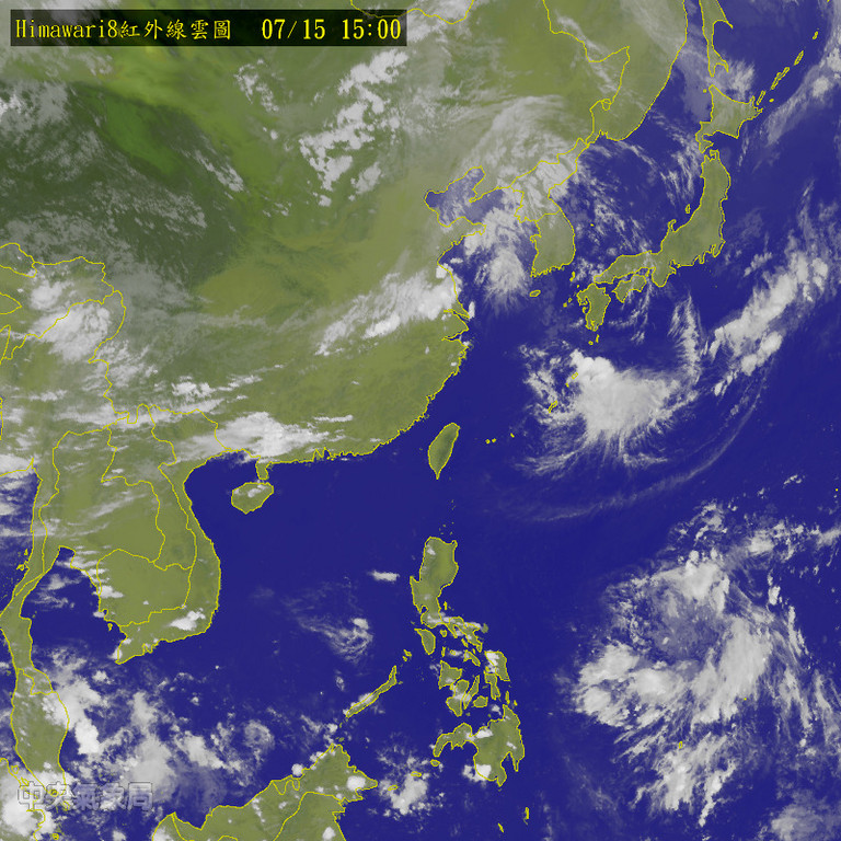 ▲15日衛星雲圖。(圖/取自中央氣象局)