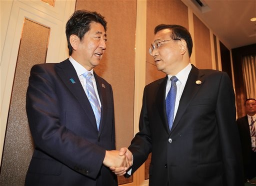 ▲大陸國務院總理李克強、日本首相安倍晉三15日舉行會談。(圖/達志影像/美聯社,下同)