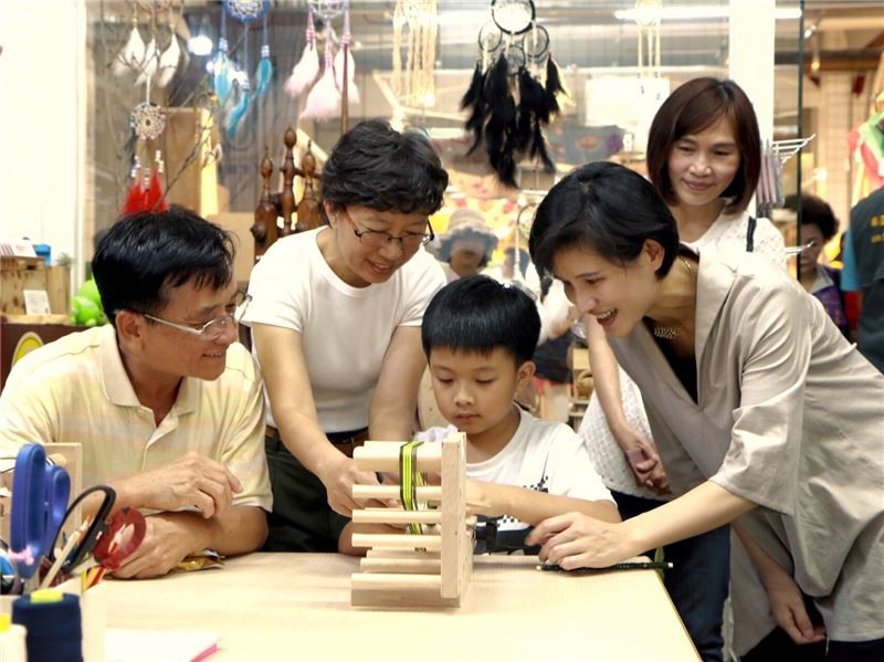 ▲鄭麗君參與耕恬手作工坊小朋友織帶體驗。(圖/文化部,下同。)