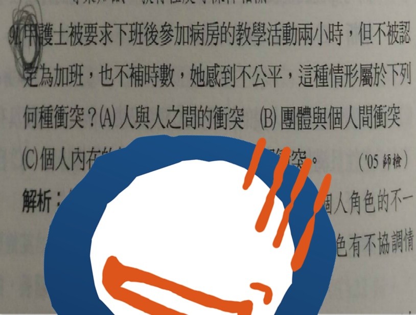 「醫勞盟」昨日分享這張考卷截圖,只見題目上寫道,「甲護士被要求下班參加病房的教學活動2小時,但不被認定為加班,也不補時數,她感到不公平,這種情形屬於下列何種衝突?」