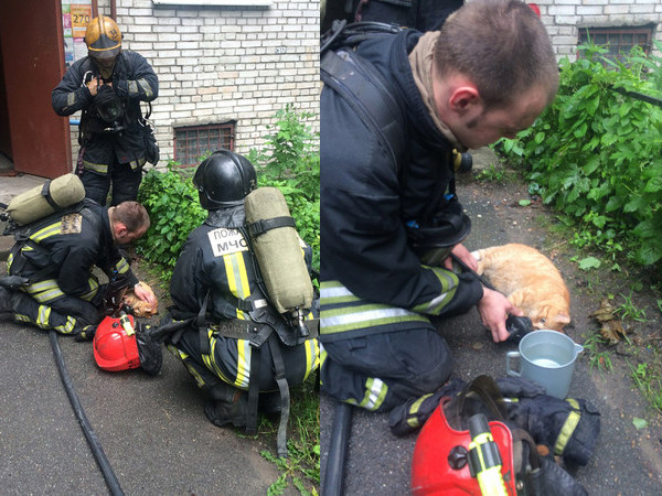這些照片被發布在俄羅斯社群網站VK上。很多網友稱讚消防員是「好樣的」、「真英雄」。有些網友說這一幕讓他們非常感動,還有許多網友關心照片中的貓咪是否安好。