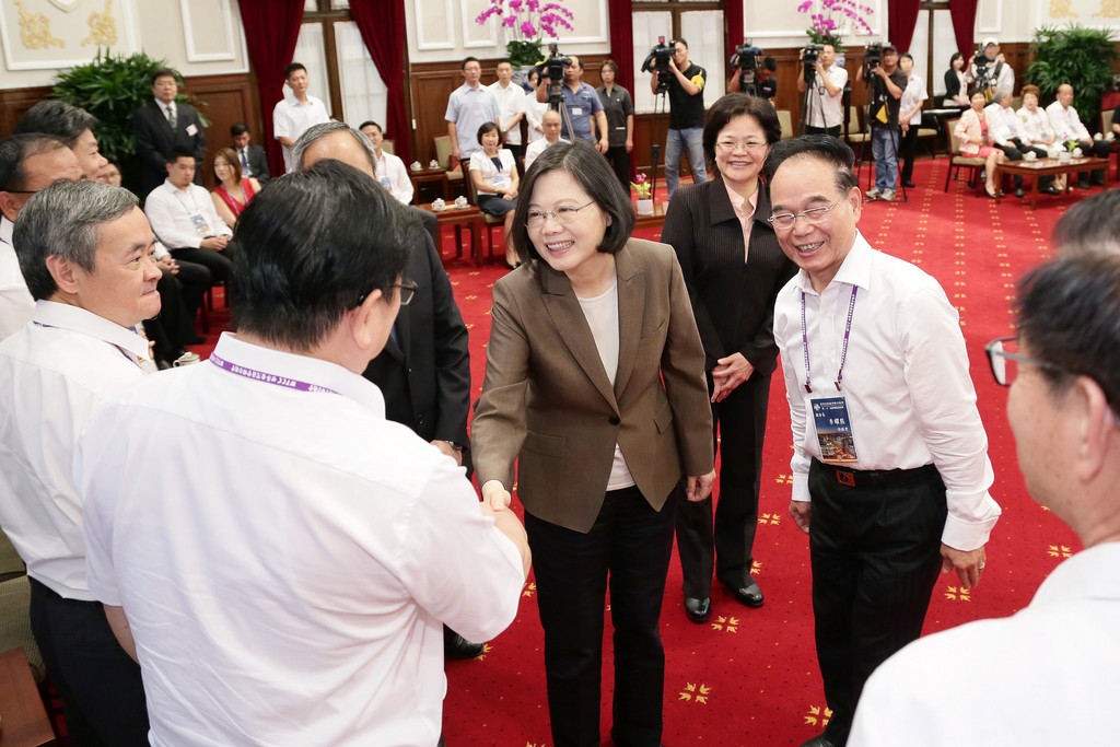 蔡英文強調,政府也做了許多努力,讓台灣走向世界,台商在全球的布局,是政府國力的延伸,好比新南向政策,就是希望可以將台商的資本引向更多國家,讓海外打拼的夥伴將來有更多的選擇機會。
