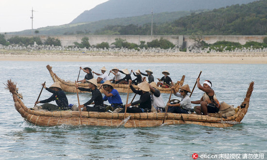 為了考證人類抵達日本的路線,日本學者模擬了3萬年前人類渡海的工具--草船。為了重現當年遷移路線,團隊17日派出了航海小組,試圖以人力划船,從沖繩縣那與國島出發,前往距離75公里的西表島;但因夜間海浪太大,最後沒能成功。