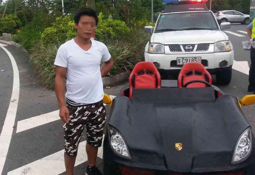 一位交通警察在路上看見一輛沒車牌的迷你敞篷跑車,車頭還貼著「保時捷」的標誌,只是車身怎麼看怎麼奇怪,他將車輛攔下以後,問該輛車如何發動,被攔下的司機才坦承,幫人用200cc的摩托車改裝成「保時捷」,卻在交貨的途中,就被警察攔截。