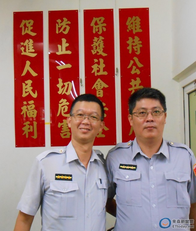 ▲台南市警六分局鹽埕派出所巡佐施明昌、警員黃相輔等2員(左起),及時救人成功。(圖/警方提供)