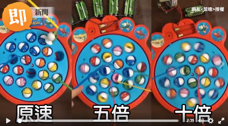 還記得小時候玩過的「釣魚遊戲機」嗎?網友「菜喳」從玩具店買回一組釣魚台後,決定利用串聯電池的方式幫它「加強電量」,看看提升至5倍速、甚至10倍速的釣魚遊戲會變成什麼樣子。