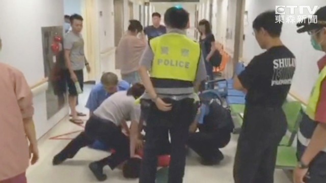 ▲壯漢情傷大鬧急診室,纖瘦女警勇撲壓制。(圖/東森新聞)