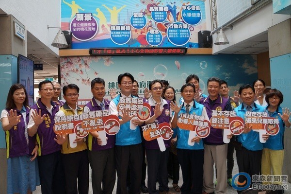 ▲ 張敬崴與桃市藥師及藥商公會成員,宣導不「藥」亂丟,小心食物鏈影響人體健康。(圖/記者楊淑媛攝)