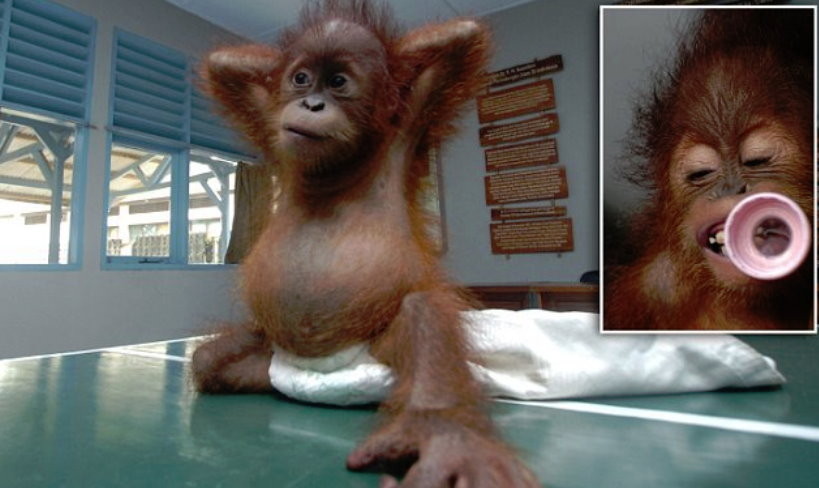 這隻7個月大的紅毛猩猩寶寶是婆羅洲的保育志工救出的,之後在位於西爪哇尖美士(Ciamis)的「自然資源保護機構」(NRCA)裡獲得了新生,保育人員照顧牠時,紅毛猩猩寶寶的可愛模樣讓人看得既開心又揪心。