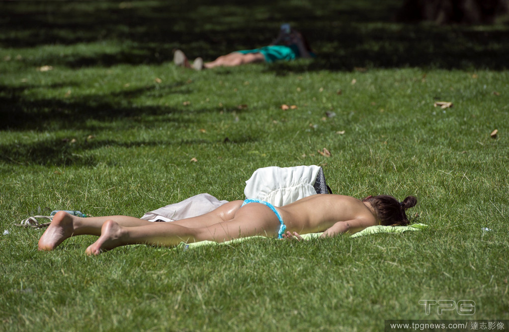 ▲熱浪來襲,有女性民眾直接脫掉內衣在公園裡享受日光浴。(圖/達志影像)