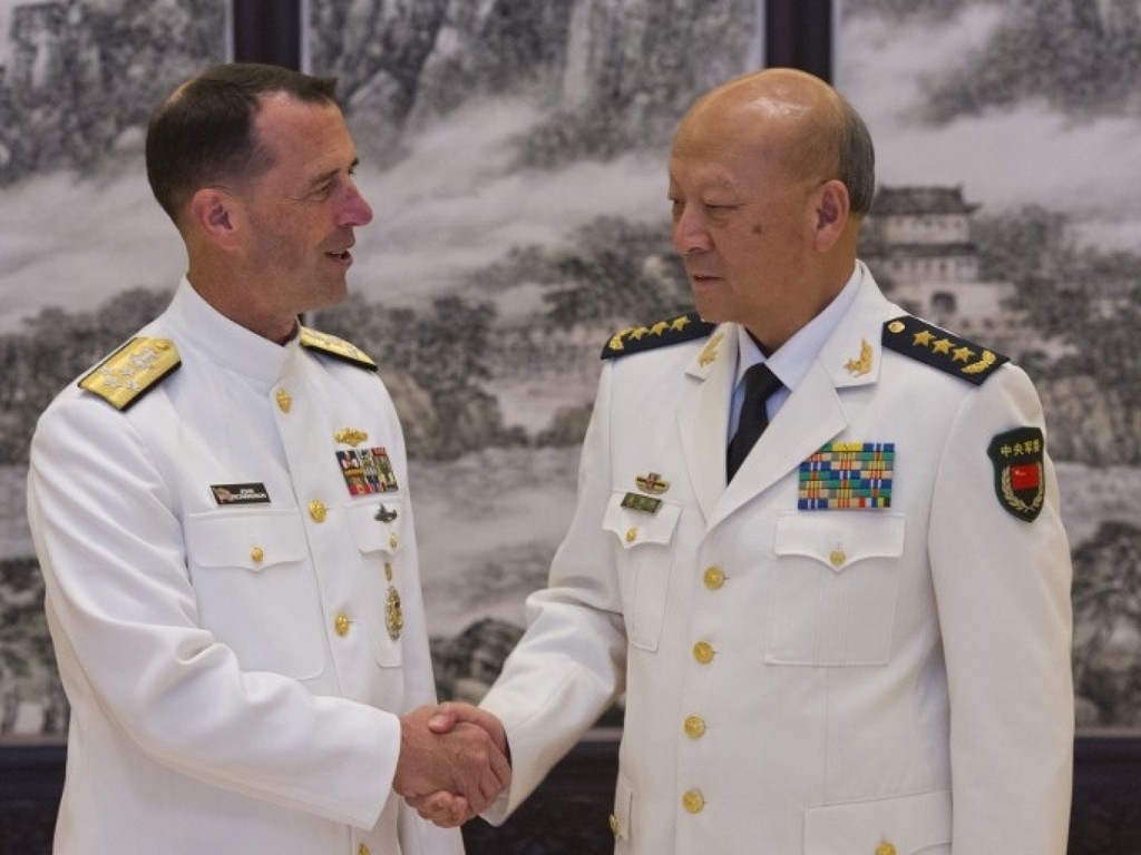 ▲中國海軍司令員吳勝利於北京接見美國海軍作戰部長李察遜(Admiral John Richardson)。(圖/翻攝自觀察者網)