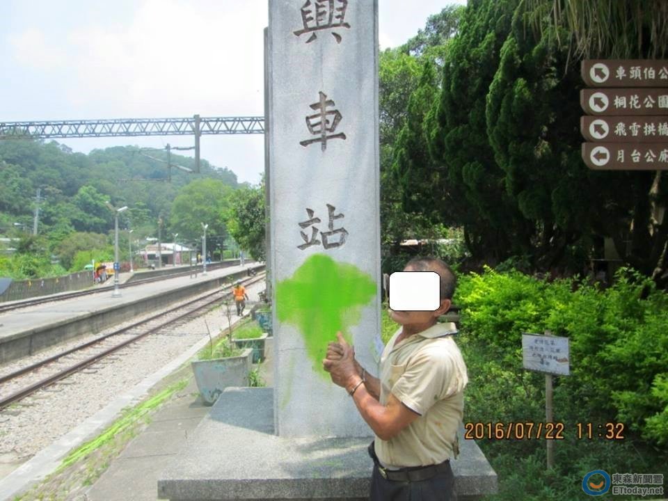 苗栗縣舊山線的勝興車站是著名古蹟,22日清晨卻遭一名楊姓男子潑漆汙損,包括石碑、「十六份」的站名都被惡搞塗成刺眼的亮綠色。警方獲報後逮捕一名56的楊姓男子,他雖坦承犯行,卻辯說是在「搞創意」,訊後被依毀損罪送辦。
