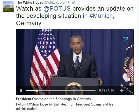 ▲慕尼黑槍擊,白宮強烈譴責。(圖/翻攝自Josh Earnest推特,下同)