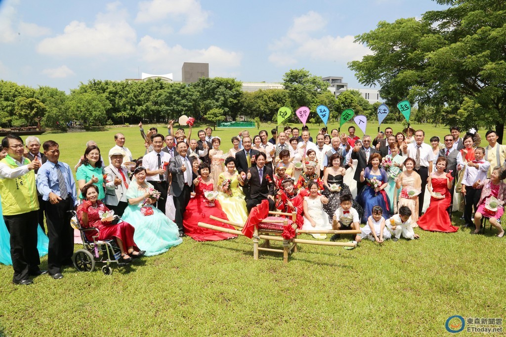 台南市政府24日在樹谷環境教育中心舉辦「起灶、入厝、娶新娘」活動,市長賴清德、顏純左副市長、文化局葉澤山局長、立委黃偉哲、議員林志展和擔任證婚人的區長們共同見證在地30對結縭多年的佳偶,循古禮走竹拱門、坐花轎、入厝、戴戒指等儀式,重溫當年結婚的喜慶歡愉。