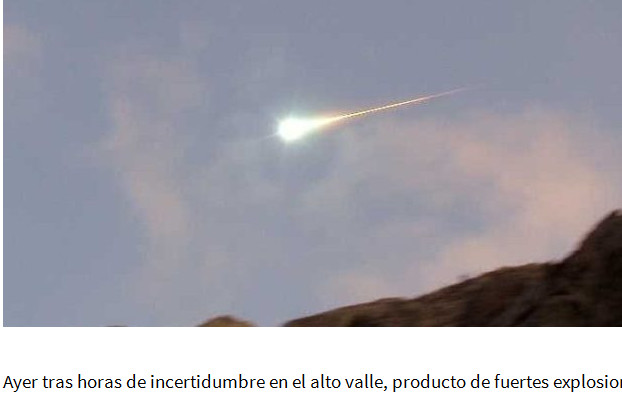 由於始終找不到爆炸來源,當地居民戰戰兢兢的度過了一個晚上,直到21日,阿根廷內烏肯(Neuquén)的天文台證實,爆炸聲是因為一顆隕石正好落在該市上空。該隕石以時速2400公里進入大氣層,最後因為高溫而碎裂燃燒成灰燼掉落。