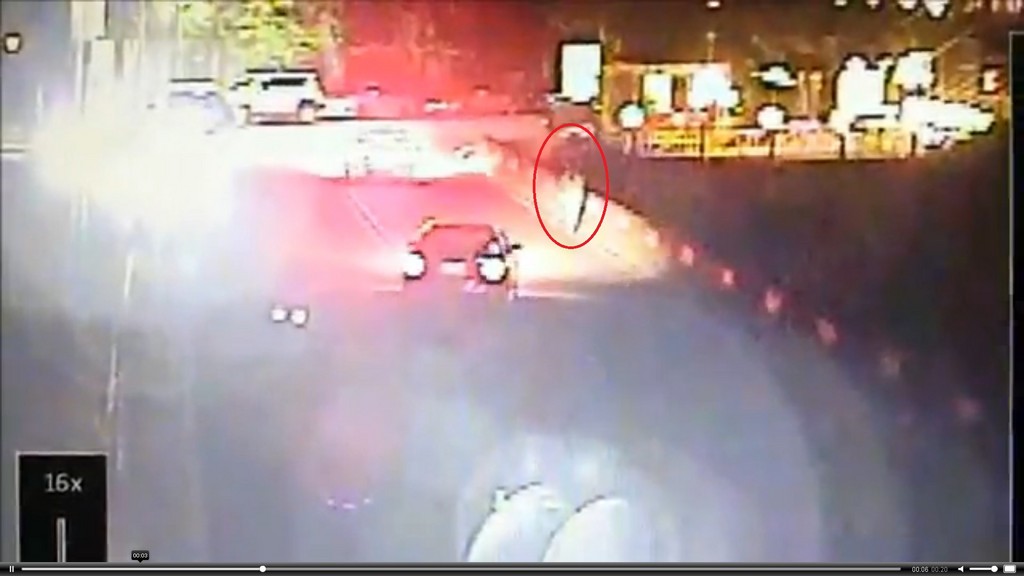 ▲女領隊遭撞飛墜橋身亡,監視器畫面相當驚悚。(圖/翻攝畫面)