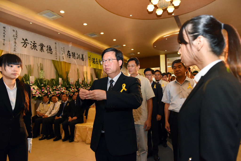 ▲鄭文燦前往導遊鄭焜文告別式。(圖/桃園市政府提供,下同)