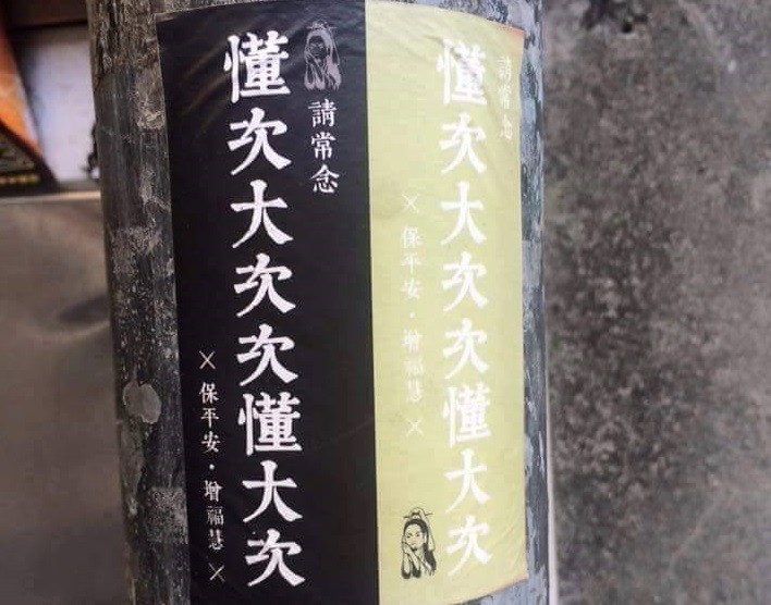 網友在「爆料公社」貼文表示,「我以為我看到的是南無阿彌陀佛,結果仔細看才覺得好像哪裡怪怪的,沒事~一定是我眼睛業障重所以看錯...」。只見標語上寫道,「請常念懂次大次次懂大次,保平安、增福慧」。