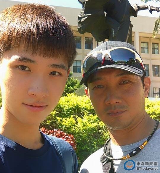 ▲台南市警二分局長樂派出所巡佐蔣士釗父子二人,親子感情深厚。(圖/警方提供)