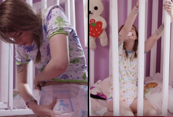 根據《鏡報》報導,美國佛羅里達州的21歲女孩傑斯(Jess)兩歲時曾遭到性虐待,讓她的成長過程蒙上一層陰霾,無時無刻總感覺到焦慮和抑鬱。為了擺脫不堪回首的記憶,傑斯期間透過傳統療法及藥物治療仍無果,直到她穿起嬰兒裝、包著尿布、吸著奶嘴才感覺到自尊感,自此之後,便總是一身嬰兒裝扮,「這是最好的方式讓我逃離心中的痛,回歸到生命初級階段」。