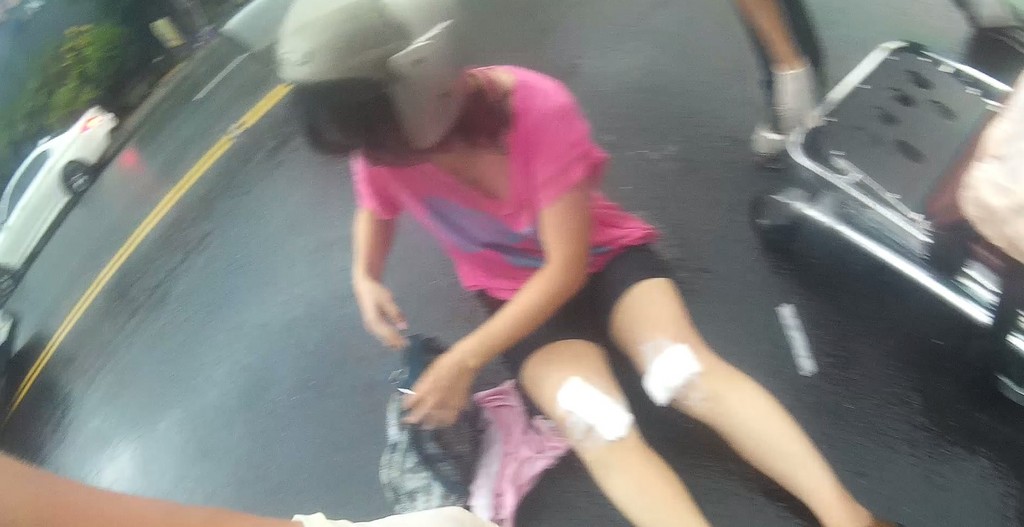 駕駛將汽車停靠路邊,未注意後方狀況即開啟車門,造成騎士閃避不及摔車。救護人員評估受傷騎士,前方駕駛(男性、年約35歲)意識清醒,右腳膝蓋擦傷,後方乘客(女性、年約32歲)意識清醒,雙腳膝蓋約1至2公分撕裂傷。救護人員給清洗傷口及包紮止血,送往嘉基醫院就醫。