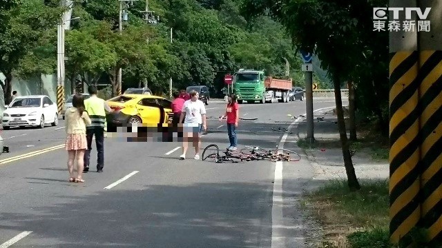 此外,宜蘭縣蘇澳分局澳花派出所趕到現場時,發現計程車停在馬路中央,車頭嚴重毀損,地面滿是破碎零件,而且計程車一旁還有兩台腳踏車,橫倒在路邊,地面上滿是大片血跡,2名單車騎士的包包、物品和鞋子也散落一地。
