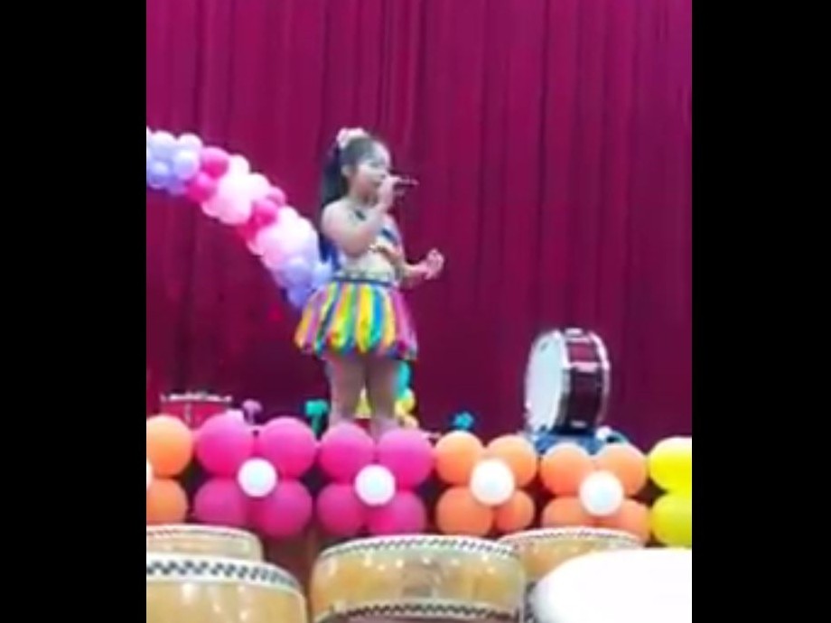 幼稚園畢業典禮上,女網友直擊這個小女生,穿著彩色舞台迷你裙裝,可愛的裝扮吸引台下人的目光。沒想到她一開口,驚豔全場,「唱歌也太厲害了吧,才大班升小學!」只見她台風穩健地站在台上,隨著音樂唱著《酒矸倘賣無》,拍子音準相當熟練。
