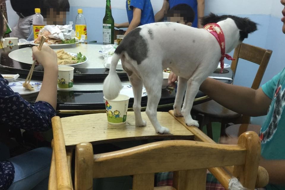 陳姓網友在「爆料公社」爆料,指他今(31)日中午到高雄市旗津一間海產店用餐,驚見隔壁桌一家人居然「愛狗無極限」,就這麼把牠放到兒童專用座椅上坐,更離譜的是拿餐廳中的嬰兒盤盛裝給狗吃的食物,「難道不知道台灣很多小孩對狗過敏嗎?」網友表示,加上這家人不斷大聲喧嘩,實在受不了、吃不下便先行離開。