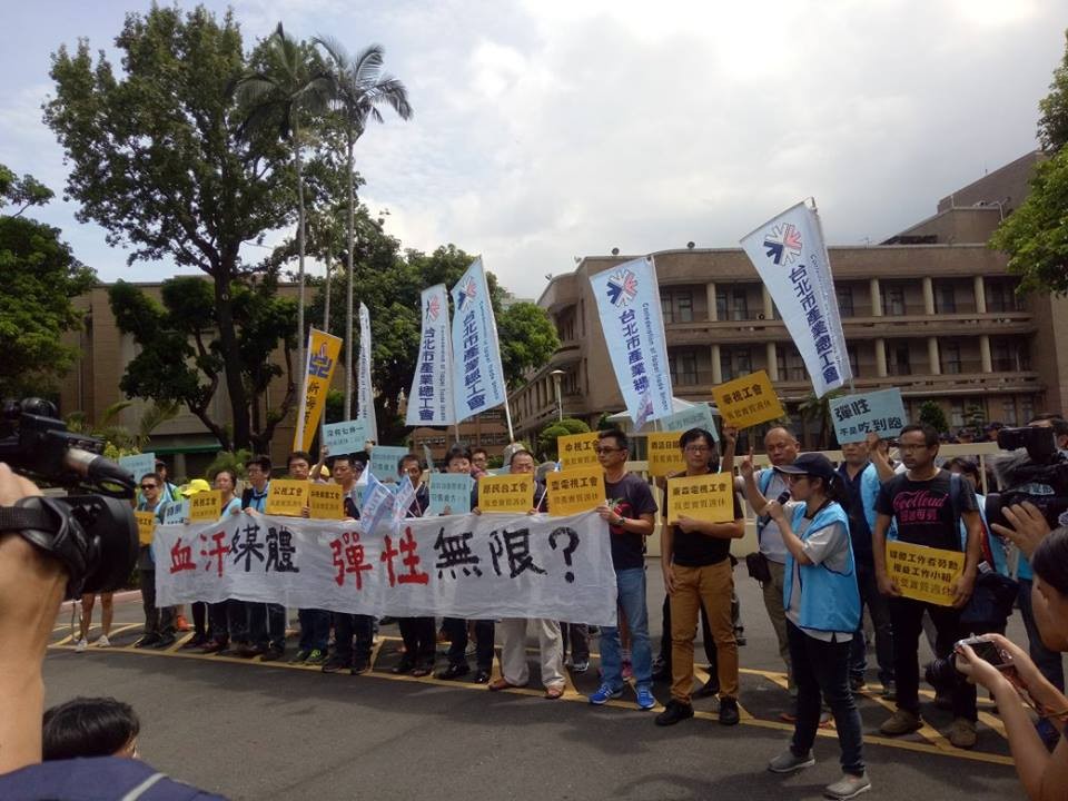▲媒體工會抗議政府轉彎「做六休一」。(圖/台北市產業總工會提供,下同)