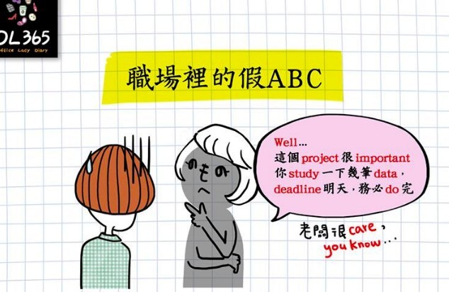 大家也許有過這種經驗,明明土生土長台灣人,說話老是喜歡模仿外國腔,或是硬要夾雜幾句英文才開心,跟這種人說話講不到3句就火氣大!時常以職場作為創作靈感的網路插畫團體「OL365」近日推出最新作品「職場裡的假ABC」,引發網友共鳴!