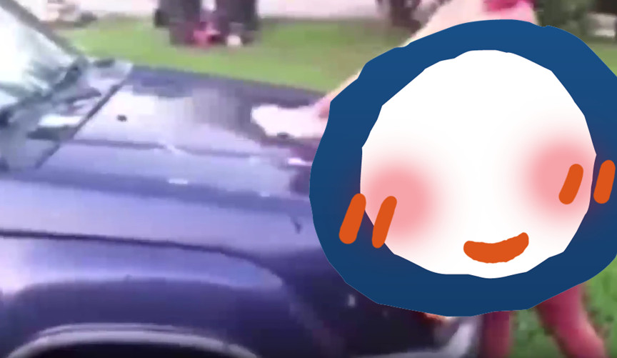 誰知在興頭上的她爬上引擎蓋,正要擺出撩人的魅惑姿勢時,膝蓋一滑直接摔倒在地,畫風瞬間180度轉變,讓人不禁好奇,現場男友的反應是大傻眼,還是忍不住笑翻。