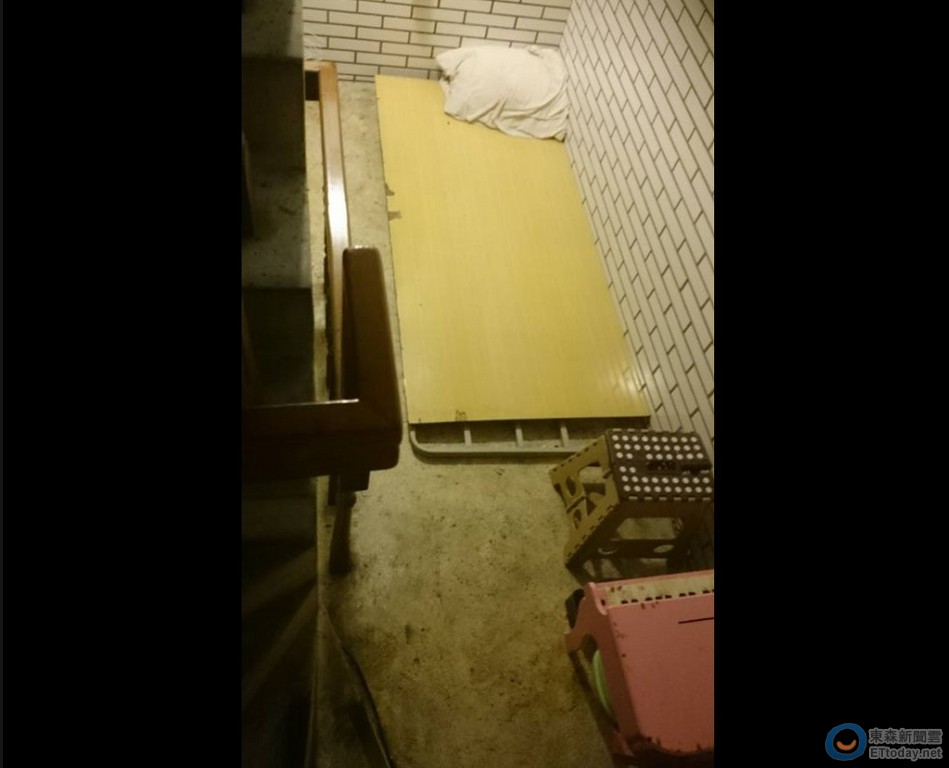 ▲狹小樓梯間擠著一張木板竟然出租3000元。(圖/網友授權提供,請勿隨意翻拍,以免侵權。)