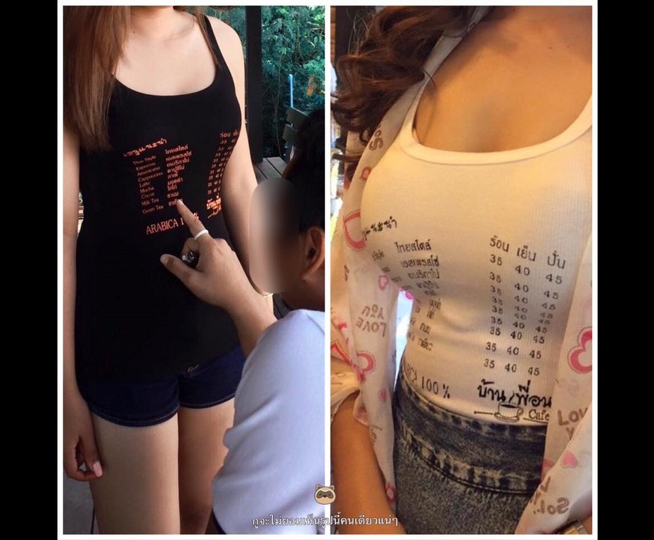 餐廳業者為吸引顧客屢出奇招,從折扣、打卡送好禮到提供捕捉寶可夢,絞盡腦汁想噱頭。泰國有一間咖啡廳就利用男性「喜愛欣賞的方式」,將菜單印在緊身背心上,讓男客看著服務生姣好身材點餐。