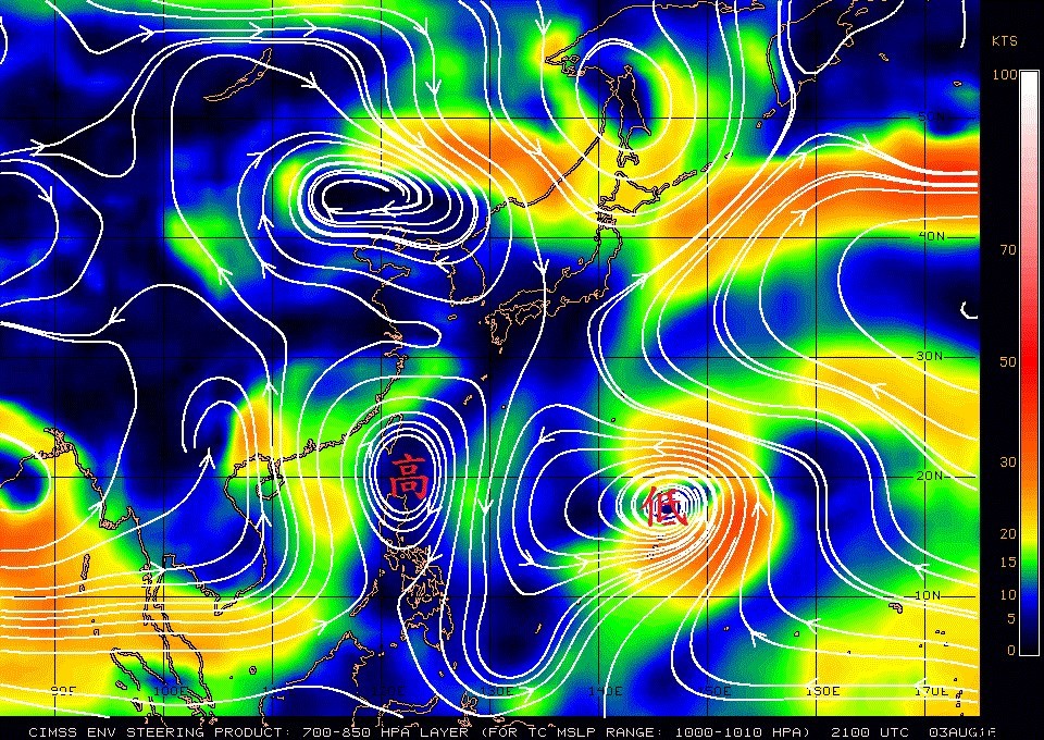 鄭明典今天在臉書PO文表示,今明2天台灣上空都有個小高壓在,所以雲量少、氣溫高,但高壓並不特別強,所以午後局部地區仍可能有對流發展,且台灣東邊有個熱帶性低氣壓,這張圖中的顏色是平均風速,「熱帶性低氣壓的外圍已經有強風,只要近中心對流發展起來,就可能增強為颱風。」