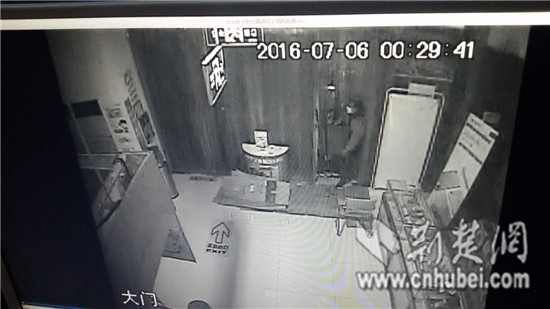 據《楚天金報》報導,被害人余先生報警稱,賣場內保險櫃被盜,保安聽到聲響到達門口時,玻璃門已打開,犯人已逃走。武漢事前川派出所刑偵民警王列迅速趕到現場,監視器畫面顯示,一名男子在門口東張西望,用工具割開玻璃門鎖,戴上口罩等進入店後,直接抱起櫃檯下面的保險櫃就跑。
