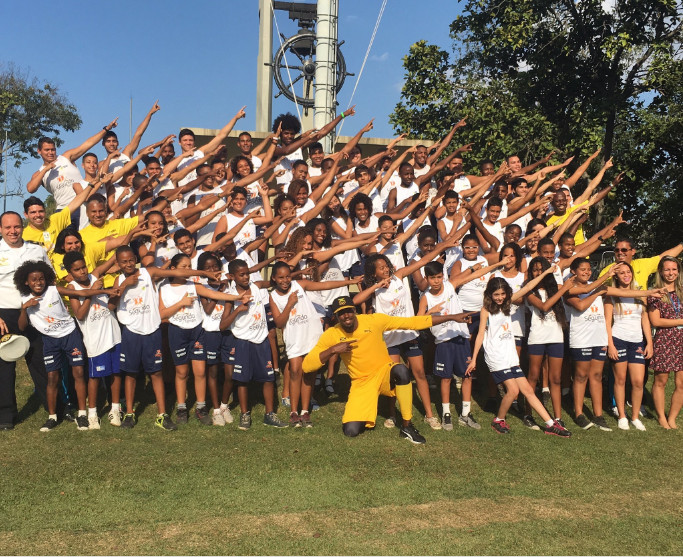 巴西時間8月2日,這群巴西貧民區的孩子受到牙買加田徑隊的邀請,來到牙買加在里約奧運訓練的基地參觀,接著和博爾特進行親密的互動,並拍下了這張合影。照片中博爾特和孩子們都做出了標誌性的勝利姿勢,而開心的笑容也掛在了孩子們的臉上。