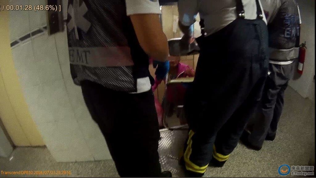 警消人員和電梯技術人員趕到現場後,趕緊搶救,以人工的方式把電梯的纜線向上拉,排除故障,還拿椅子進到電梯,3隻小狗跑出來後,飽受驚嚇的婦人獲救直說感謝,鬆了一口氣。