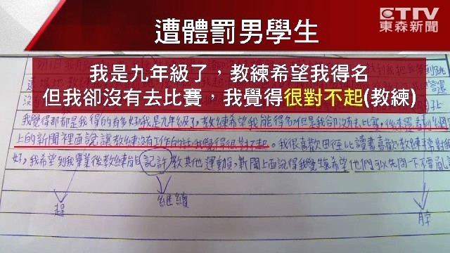 校方表示,「(教練)他就非常的生氣,原因是因為他是9年級的孩子,這個比賽對他來說是非常非常的重要的,因此可能教練情緒上面……可能就對這個學生就處罰了。」
