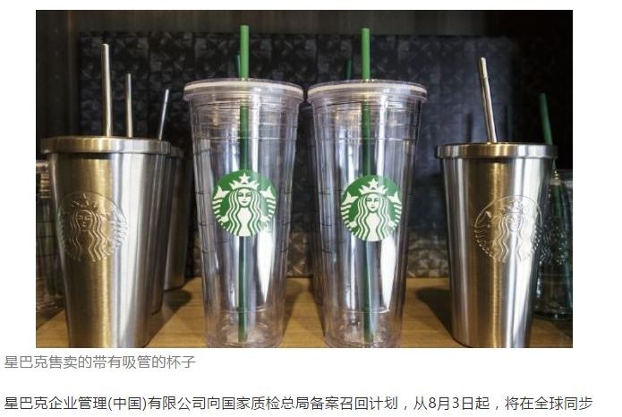 根據《澎湃新聞》報導,星巴克企業管理(中國)有限公司向國家質檢總局備案召回計劃,從8月3日起,在全球同步召回一款杯類商品配件「不銹鋼吸管」。這款配件涉及大陸星巴克2013年9月到2016年3月間在大陸門市銷售的6款金屬杯,數量為5萬4457件。