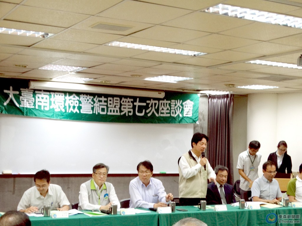 台南市政府5日舉行「大台南環檢警結盟第7次座談會」,台南市長賴清德感謝結盟單位對維護大台南環境的努力,期勉各單位繼續緊密合作,找出更好方法打擊環境犯罪,遏阻環境污染,並對協助河川巡守的幫忙舉發污染,表示最誠摯的感謝。