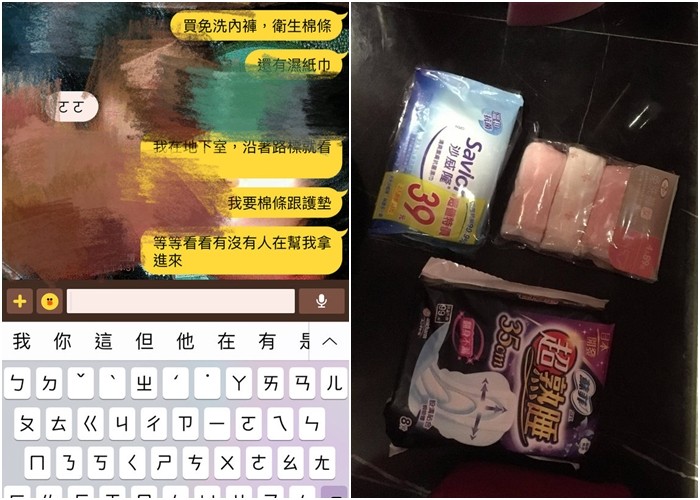 男友緊張地問她怎麼了,她也回他LINE請他幫買生理用品,男友回「喔喔」變立刻殺去買,「大概5分鐘後,男友提著包包站在門口,用氣音說『開~~~門~~~』一開始以為自己聽錯,後來他叫了一聲「胖子開門!」(突然變大聲)X!害拎鄒罵嚇一跳!」只見在第一間廁所的原PO,看到男友伸手遞包包。